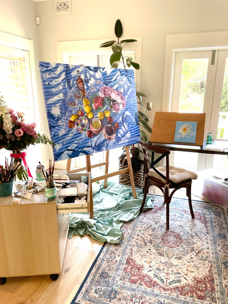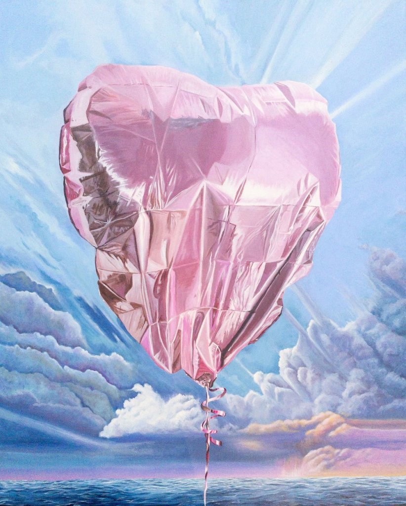 Searching through her Instagram, what I found was that all of Chilu’s canvases are similarly detailed. Her canvases feature glistening grapes, crumpled foil balloons bloated with air, and the soft delicate petals of peonies rendered in almost high definition. This is an extremely impressive result for a self-taught artist!